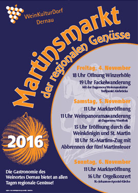Strohballen, würziger Glühwein und urige Winzerhöfe geben dem Martinsmarkt in Dernau am zweiten Novemberwochenende , vom bis , freitags bis sonntags die besondere Note.