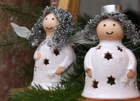 Schier unerschöpflich das Angebot: Adventsschalen, Adventskränze, Windlichter, Öllampen, Schmuck, gefilzte Hüte, Taschen, Weihnachtslichter, Krippenfiguren, Glocken, Weihnachtsengel, Kerzenleuchter, Dosen für Weihnachtsgebäck, Plätzchenteller, Glühweinhaferl, Weihnachtskugeln, Laternen, Fackeln und Feuerschalen.