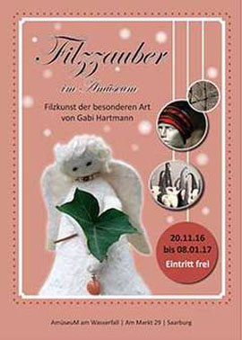 Am 2. und 3. Adventssonntag finden jeweils zusätzliche Präsentationen unter dem Motto: SCHMÜCKENDE FILZUNIKATE im Amüseum statt.