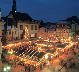 Der Göttinger Weihnachtsmarkt liegt mitten in der Altstadt Göttingens. Er umschließt den Marktplatz, das Alte Rathaus und die doppeltürmige Johanniskirche. Der weltberühmte Gänselieselbrunnen liegt mitten auf dem Weihnachtsmarkt. Hier kann der alte Brauch der frischpromovierten Göttinger Doktoren, das Gänseliesel zu küssen, hautnah miterlebt werden.