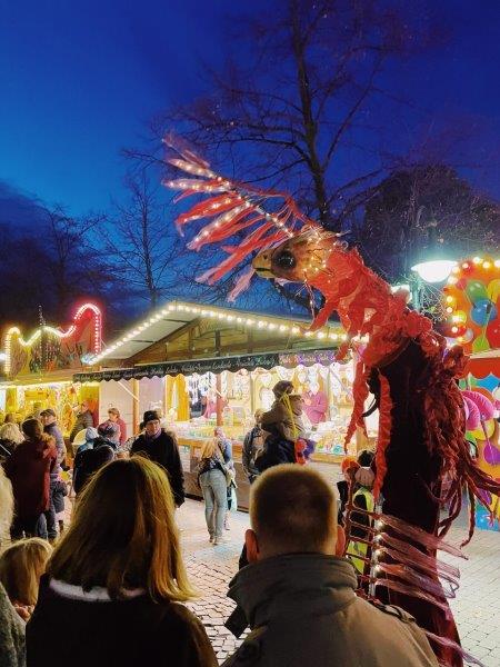 Neben den klassischen Jahrmarkt- und Gastronomieständen steht der Sonntag unter dem Motto „Feuer & Licht“. Lichtgestalten, Feuerjongleure und ein Lichterumzug sorgen für ein spannendes und familienfreundliches Unterhaltungsprogramm.