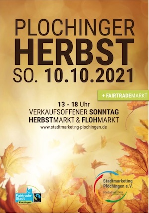 Der Plochinger Herbst öffnet am Sonntag, dem 05. Oktober 2025, von 13:00 bis 18:00 Uhr mit verkaufsoffenem Sonntag, FairTrade-Markt, Herbst- und Flohmarkt in der Plochinger Innenstadt.