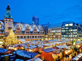 Wie vor 500 Jahren fügt sich der Leipziger Weihnachtsmarkt auch heute harmonisch in die faszinierende historische Kulisse der Leipziger Innenstadt ein. Mit über 250 originell geschmückten Ständen wird er seinem Ruf als einer der größten und schönsten Weihnachtsmärkte in Deutschland gerecht. Traditioneller Hauptbereich des Weihnachtsmarktes ist der Markt. Dort befinden sich unter anderem eine etwa 20 Meter hohe Fichte und die Marktbühne mit ihrem umfangreichen Weihnachtsprogramm. Auf dem Augustusplatz bietet ein 38 Meter hohes Riesenrad einen einzigartigen Blick über Leipzig und im Salzgässchen lädt das historisch nachempfundene Etagenkarussell zu einer Fahrt ein.